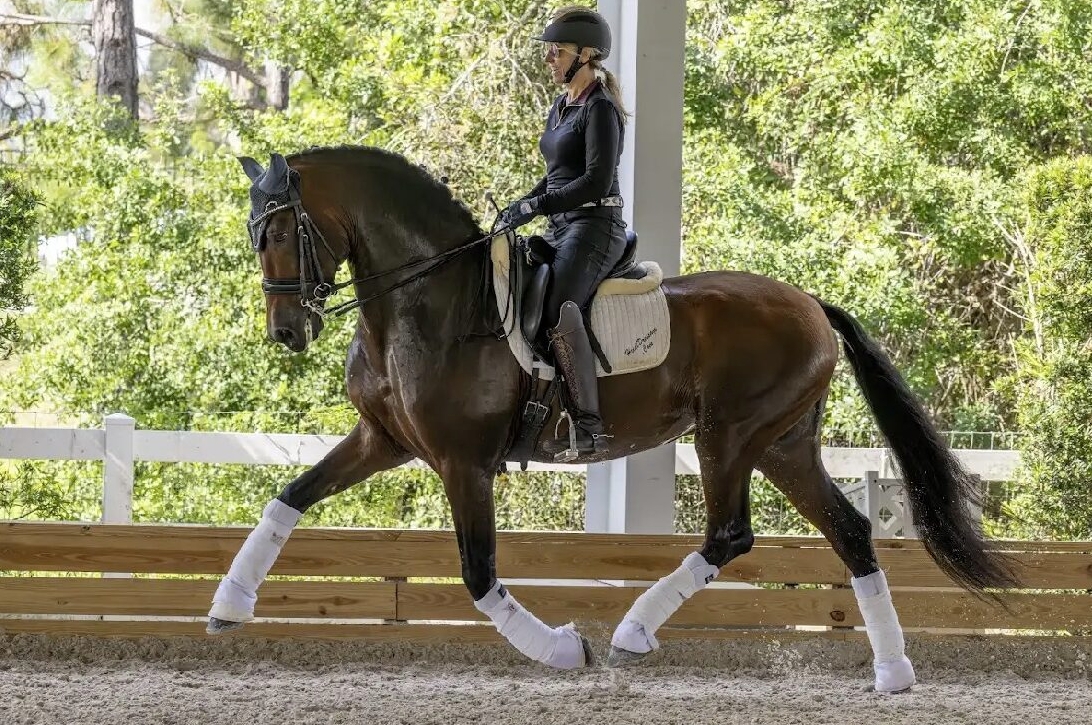 Uptown is a breathtaking 2013 Bay PRE gelding standing 16.3h, confirmed at Grand Prix and beautifully trained. He offers natural swing, an exceptional walk with great overtrack, and expressive, uphill gaits. He has successfully competed through the Grand Prix with scores over 67% and shown CDI Small Tour with scores above 70%.